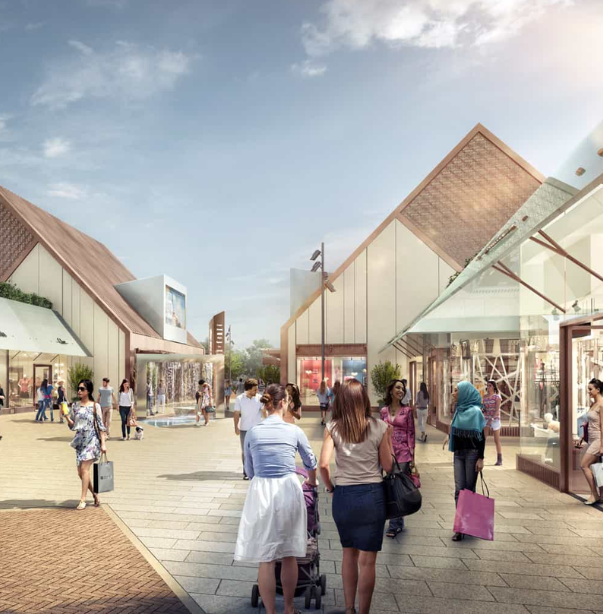 Creation of a new 270,000 sq ft designer outlet village offering luxury brands alongside cafes, restaurants and public spaces.