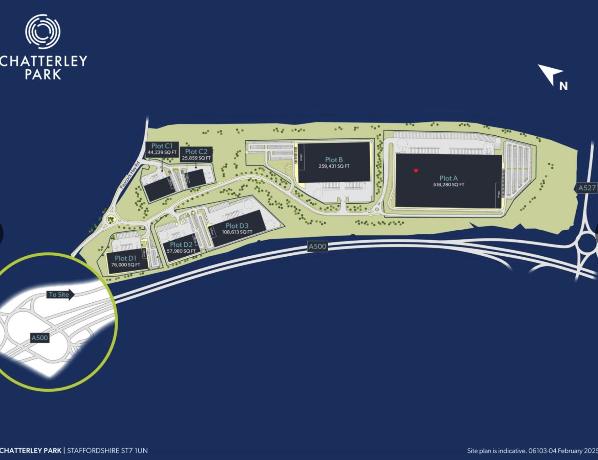 This strategically located 106-acre site benefits from excellent connectivity adjacent to the A500 and close proximity to Junction 16 of the M6 motorway, forming part of the wider Ceramic Valley Enterprise Zone—a catalyst for economic growth and manufacturing excellence in Stoke-on-Trent and Staffordshire.